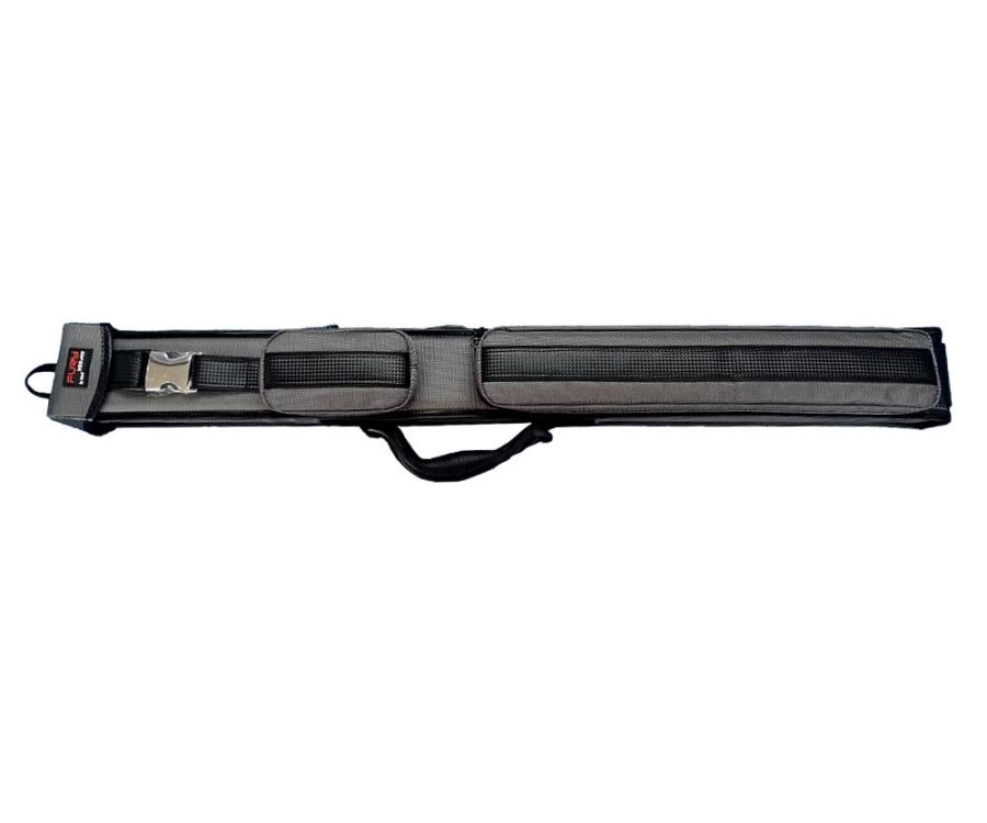 Fury has released a line of sleek and affordable cue cases! These guys are awesome and perfect for both a beginner and experienced pool player. This case holds 2 Butts and 3 shafts, as well as a long pocket on the face, potentially for the butt of your jump cue! They’ve kept it simple with this design featuring grey vinyl and black trim. It is noteworthy that the lid of this case opens and closes with the use of a high quality, metal buckle. That isn’t often seen on cue cases but we are loving it! Are you looking for something a little bigger? Check out their sister line of 3×5 hard cases.