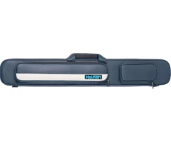 If you are searching for a new pool cue case, take a gander at this navy colored ultra-vinyl flat pool cue case from Molinari. This case features a longer jump pocket on the outside of the case along with a smaller accessory pocket. Inside the case is loaded with amenities! A removable and replaceable sleeve, several additional pockets and a soft lining will ensure that your cues, tools and billiard equipment are kept safe from the elements and will be well protected during trips to and from your local pool hall.Â