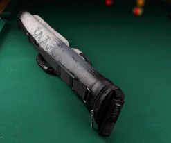 The new OLB22G hard case from Outlaw will hold two full cues and can also fit your jump handle in the longer pocket and a smaller pocket designed for your smaller accessories. There is something ironic about this case being able to hold two cues as there are two eagles that are embroidered on the case, which appear to be wrapping themselves around the case – protecting your precious cargo inside. The detailed eagle head on the top pocket is keeping a watchful eye over your cues and keeping the enemies at bay.Â